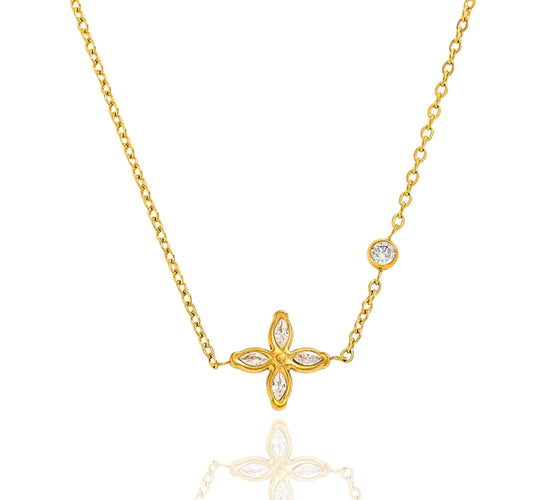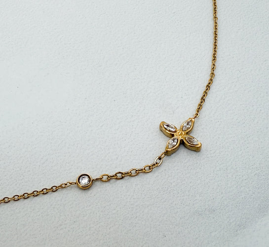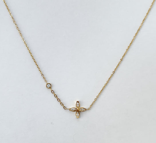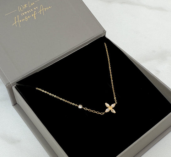 Say hello to the BEA Crystal Gold Flower Pendant Necklace – your new go-to piece for adding a touch of sparkle to any moment. This sweet little beauty features a gorgeous crystal flower at its heart, with a cheeky cubic zirconia accent that catches the light just right. Delicate enough to wear every single day, yet special enough to make you smile every time you catch your reflection.
