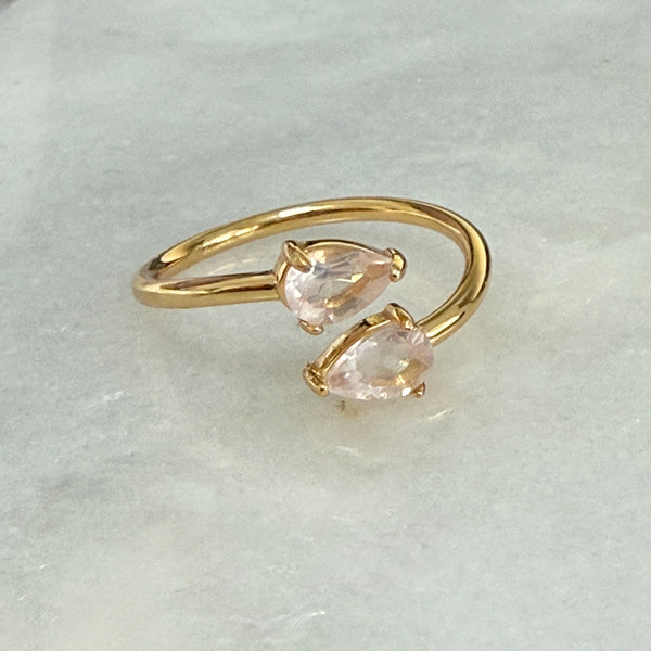 Rose Quartz Crystal Teardrop Ring (18k Gold)