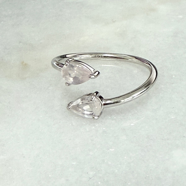 Moonstone Crystal Teardrop Ring (Sterling Silver)