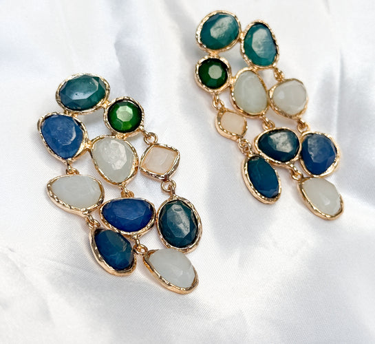 Make a bold entrance with the HARPER statement earrings, where cascading colourful jewels meet playful tassel details. These oversized beauties demand attention with their generous width, perfect for letting your accessories steal the spotlight. Pair them with a sleek, minimal hairstyle and watch heads turn as the earrings become your outfit's main event. Pure glamour, zero subtlety.