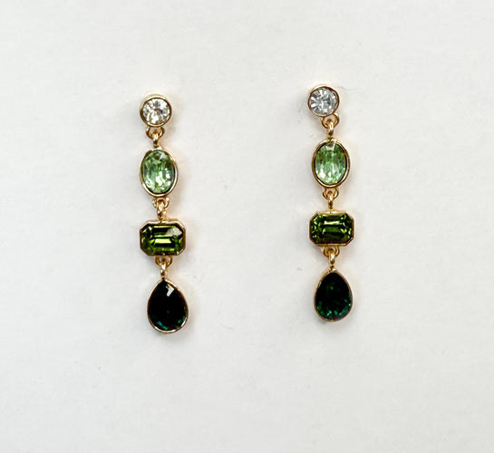 These earrings are lightweight and comfortable to wear and feature hues of beautiful greens within a gold base which are not only light and comfortable but give a luxe finish.